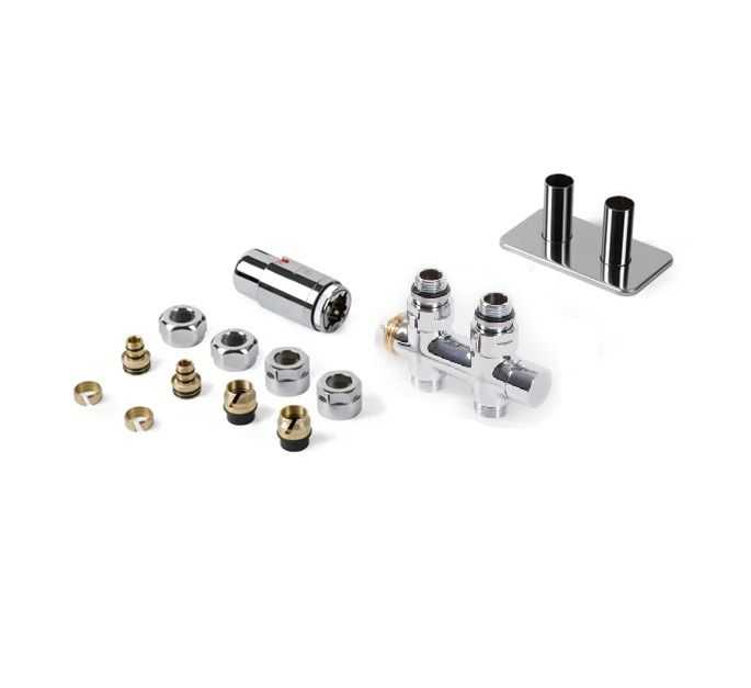 Obsahuje: integrovaný termostatický ventil priamy, termostatickú hlavicu M30x1,5, integrovanú kryciu sadu, 2x adaptéry AL-PEX Ø16x2 a meď Ø 15.