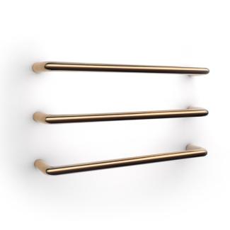 M Tube Round je výsledkom úsilia prioritizovať elektrické ohrievanie menších kúpeľňových priestorov. Aj preto je tento nádherný kus minimalistického umenia dostupný zásadne iba v elektrickej verzii. Radiátor tvoria 3 tyče vzdialené od seba 120 mm navzájom prepojené pod omietkou. V závislosti na preferenciách zákazníka disponuje veľkou mierou výsledného farebného prevedenia. Materiál z nerezovej ocele si môžete dať vyladiť finišom v podobe brúsenia alebo leštenia, prípadne čiernu textúru alebo zvoliť bielu farbu, prípadne RAL farby. Ako inak, nechýba ani titániový finiš vo farbe medi alebo zlata.